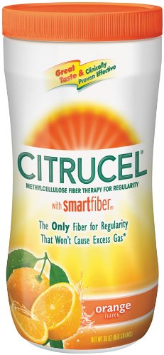 No excess gas. Doctor recommended. Daily source of 100% soluble fiber. Gluten free. Taste preferred 2 to 1 over Metamucil. Great-tasting orange flavor. Non-allergenic therapeutic fiber derived from a natural source. This unique fiber does not ferment, so it won't cause gas. Encourages gentle elimination naturally, without chemical stimulants. Doctor recommended for restoring and maintaining regularity. Mixes easily and completely for a smooth textured drink. Each Dose Contains: Calcium 80 mg, Potassium 110 mg, and Sodium 3 mg. Each dose contributes 60 calories from sucrose. Citrucel is Different: Citrucel is protected by patents; No Citrucel products are sold as store brands. Made in the U.S.A.